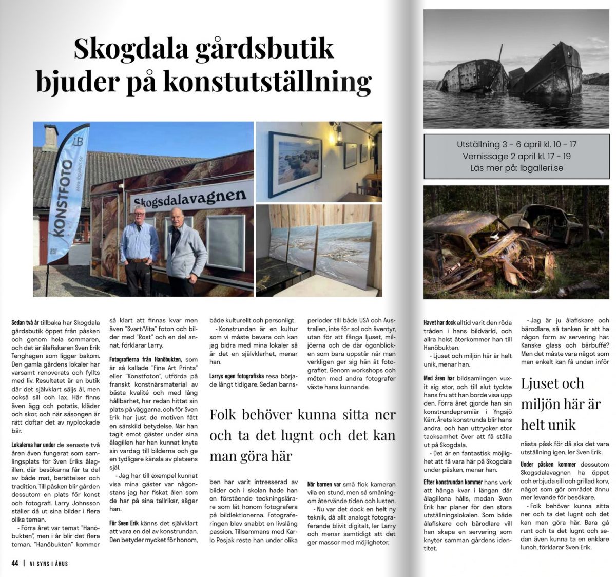 Vår utställning i Påsk på Skogdala uppmärksammas av tidskriften ”Vi syns i Åhus”.