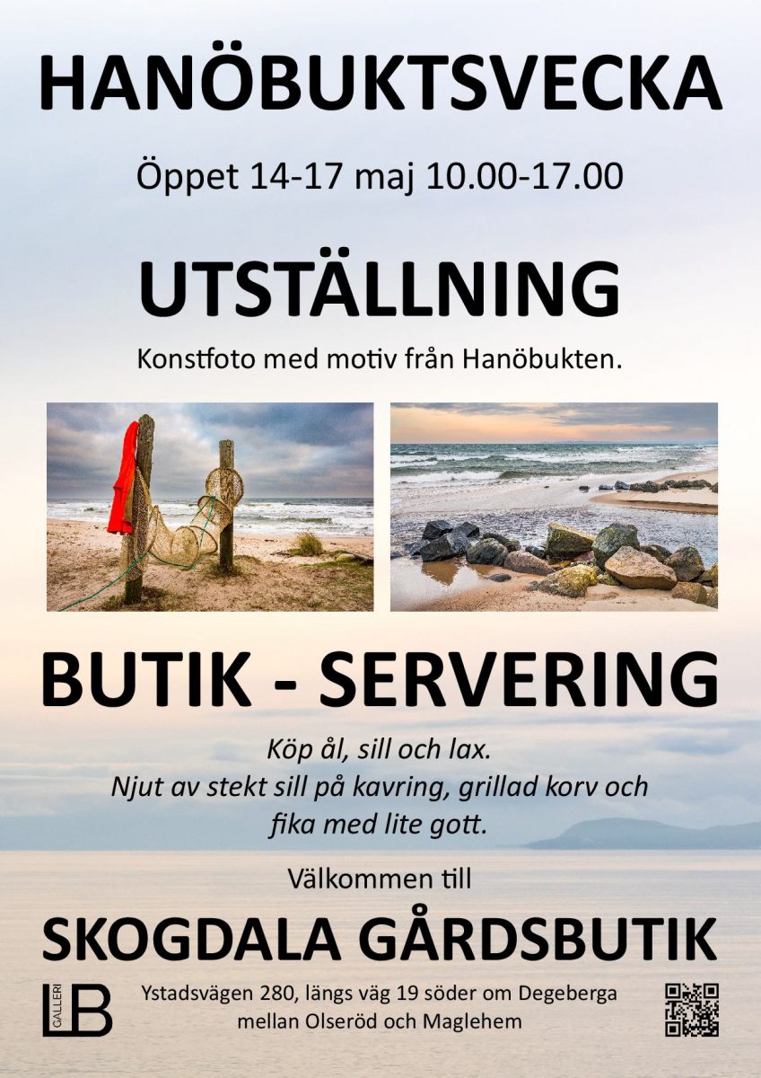 Vi på Skogdala deltar de fyra sista dagarna med början på Kristihimmelsfärdsdagen till helgens slut, dvs 14-17 maj. Vår utställning fokuserar på bilder från Hanöbukten med omnejd och Tenghagen har affären öppen och serverar sillamackor och grillad korv.
