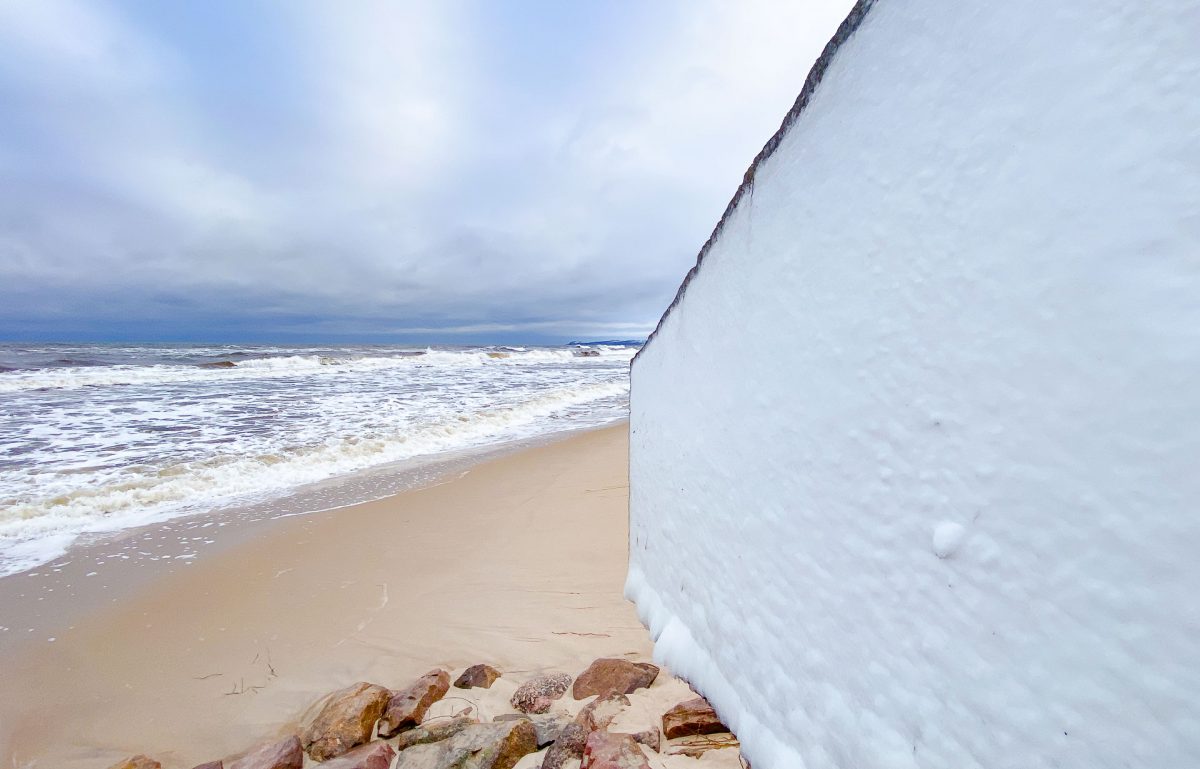Isvägg på ett värn vid Hanöbukten. |