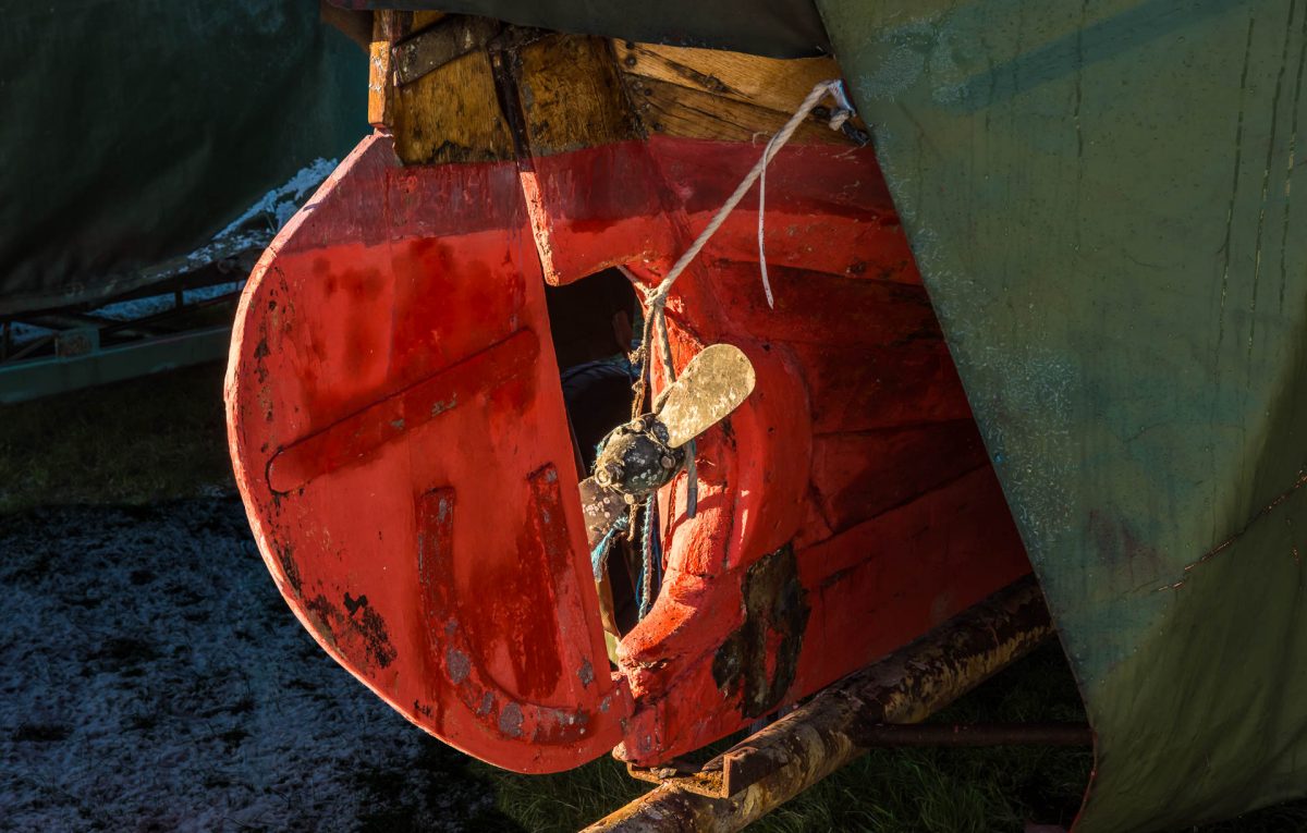 Roder på en båt i Kiviks hamn. |