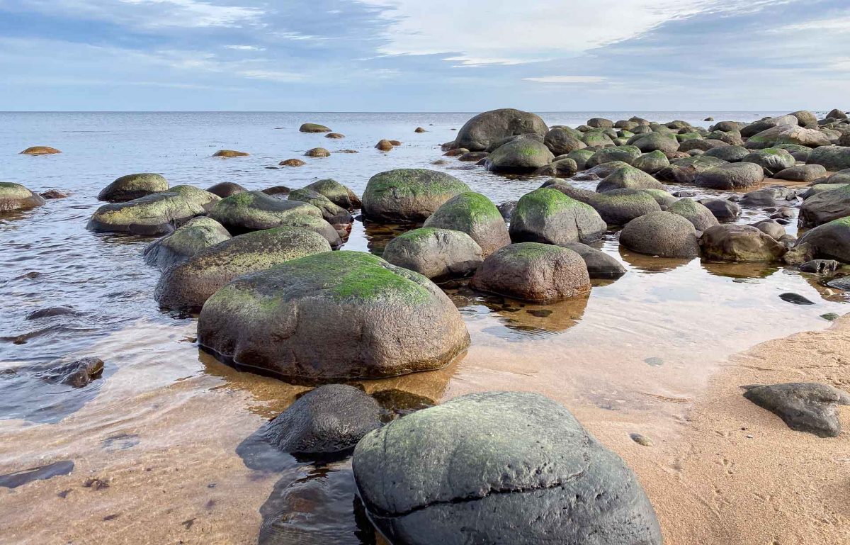 Grönbeväxta stenar vid Hanöbukten |